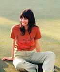 Fluro red* and black ink on a copper tee. Artwork by Mia Boe, for Music in Exile.
